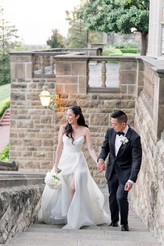 From romantic dips and veil play to sweeping staircases and golden light filtering through the trees, these portraits blend classic romance with a clean, editorial edge. Greystone offers so many vignettes—from secret garden paths to imposing stone archways—and we made use of them all.